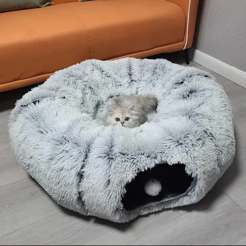 En sammenleggbar alt-i-ett-tunnel for katter som gir varme i alle årstider, med en avtakbar og vaskbar dyremat