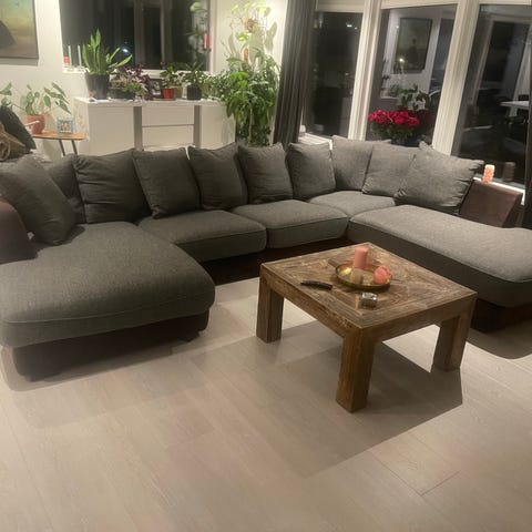 Sofa og bord gies bort. Sofa er godt brukt, litt ødelagt inni det ene armlenet, men ikke noe av betydning for bruk. Må hentes enten lørd eller sønd