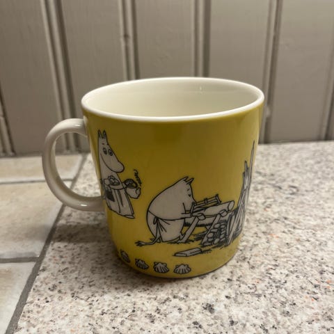 Selger Snusmumrikken grønn mummikopp, denne er litt mer brukt enn de andre koppene jeg selger, men den har ingen hakk.