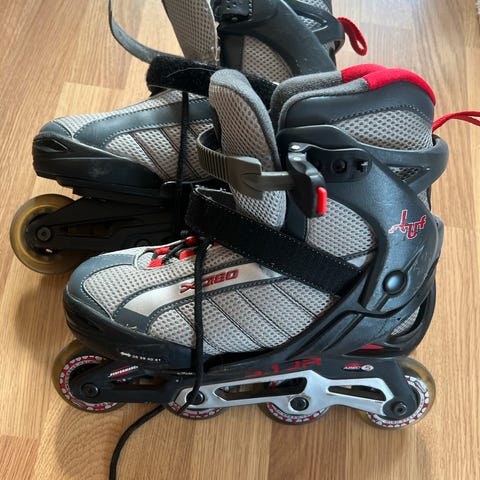 Rydder og derav selges et par pent brukte *Proflyer* rollerblades str 47 i sort, rødt og grått. Sporadisk lite brukt og fremstår i bra stand. De er noen år gamle men har ligget tørt i en bod. Se forøvrig bilder. Kan sendes😊