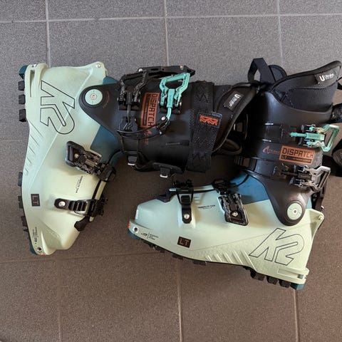 Godt brukt Dispatch Pro i str 26,5 (+/-42) toppturstøvel selges 1500,- Støvlene er brukt tre år, men er like hele, både skallet og innerstøvlen. Innerstøvlen har Boa-stramming og sitter tight og fint. Har montert ekstra powerplate som kan tas av (to skruer) hvis man ønsker en litt mykere støvel. Innerstøvlen har jeg passet ekstra over tærne og hælen for tightere passform. Og det er plate bakpå leggen for mer vinkel. Denne sitter bare med borrelås og kan fjernes. De veier nå 1600g ink plater og padding. Selges uten innersåler, da jeg har brukt formstøpte. God fleks og kjørestøvel samtidig som vekta er ok. Har vært godt fornøyd! Sålelengde 304mm.