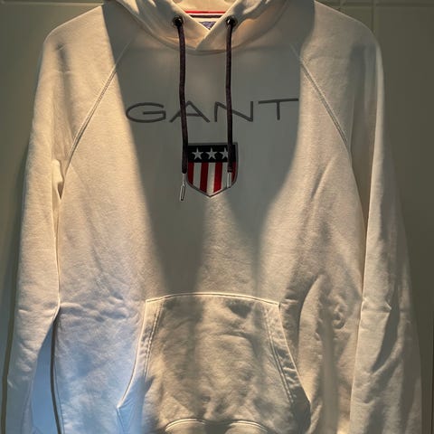 Gant, hettegenser, hoodie, hvit, bomull, elastan, shield, logo, S, herre, lignende merker: Ralph Lauren, Lacoste, Tommy Hilfiger, Hackett
