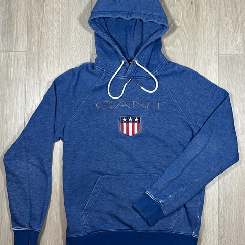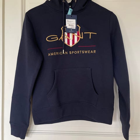 Gant, hettegenser, hoodie, marineblå, navy, bomull, polyester, shield, logo, Ralph Lauren, Lacoste, Tommy Hilfiger, S, herre