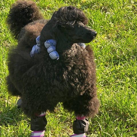 Sløyfer til hund i ulike mønstre og farger. Sløyfene har blant annet prikkete og paisleymønster i mørke og lyse nyanser. De festes rundt halsen med justerbar rem. Egnet som pynt til hund ved spesielle anledninger eller til hverdagsbruk. Kan også brukes av feks. mennesker. 25kr per, 15kr per ved kjøp av 3 eller fler..