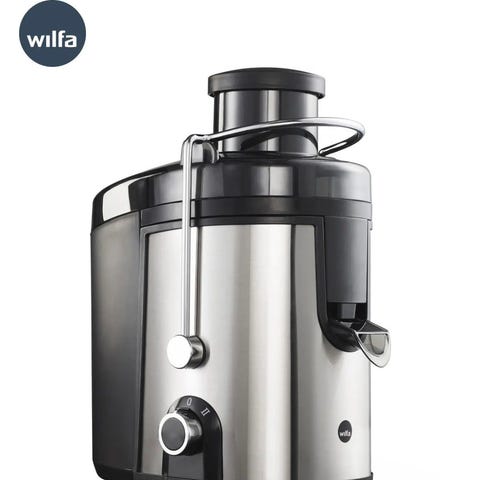 kraftig og effektiv Wilfa Squeezy Big juicepresse (modell JU2S-800). Dette er en solid maskin på 800W som lager frisk juice av både harde og myke frukter/grønnsaker på sekunder.