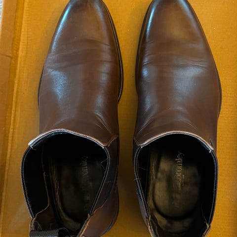 Stockholm Design Group chelsea boots i brunt skinn i størrelse 42. Klassiske ankelhøye boots med elastikk i sidene og lav hæl. Overdel i glatt skinn og yttersåle med lav profil. Passer til bruk i hverdagen og til mer formelle anledninger.