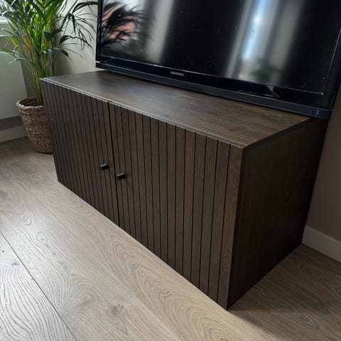 Selger min Gamtofte skjenk kjøpt fra Jysk grunnet flytting. Skjenken er i god stand og har ingen slitasjemerker, hakk eller riper. Den har en ramme i eik, med hvite skapdører, og hyllen for å dele lagringsronmet i to kan fjernes dersom man heller ønsker et stort, høyt lagringsrom. Skjenken er brukt som tv-benk.