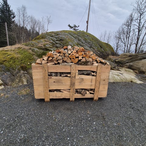 Bjørkeved produsert i 2024 selges i 1000l sekker på palle!