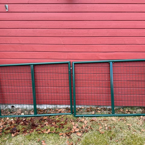Porten er lakkert fra fabrikk i NCS 6040-Y90R, Jotun Husmannsrød.