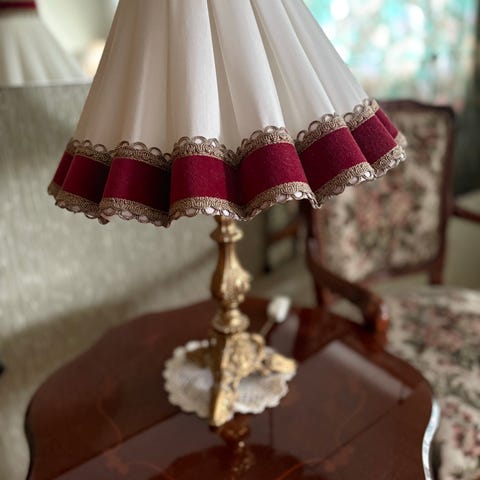 vintage, lampeskjerm, boudoir, retro, antikk, lampe, bordlampe, stoffskjerm, fransk stil, shabby chic, romantisk, interiør, belysning, dekor, klassisk, beige, broderi, vintage lampe, retro interiør, lampetilbehør.