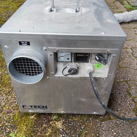 Egenskaper: Profesjonell avfukter som fungerer effektivt selv ved lave temperaturer (i motsetning til vanlige kondensavfuktere). Utstyrt med timeteller og analog fuktighetsindikator.