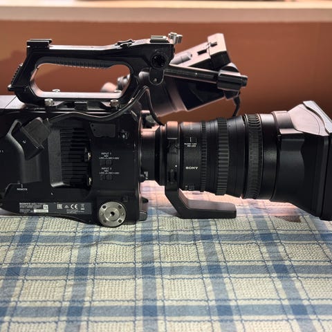 Sony profesjonelt videokamera, levert med Fujinon zoomobjektiv og stor solblender.