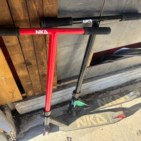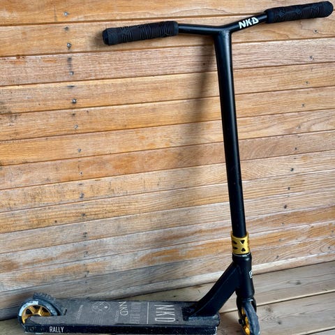 Modellen har solid T-styre og deck med logo. Hjulene har dekksider i lys tone som matcher håndtakene. Egnet som triksesparkesykkel for bruk på asfalt og i skatepark. Passer for barn og ungdom som ønsker en robust sparkesykkel til daglig bruk og enkel triksing.