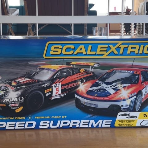 Scalextric ARC One App Race Control bilbane i skala 1:32. Er ganske så sikker på at alle delene fungerer som de skal. Settet inkluderer bilbane med to racerbiler og trådløs styring via app med Bluetooth-tilkobling. App-løsningen gir mulighet for å registrere runder, hastighet og løpsoppsett. Passer som elektrisk racerbane for hjemmebruk.