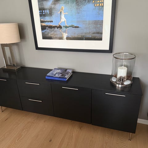 Selger en meget flott og funksjonell IKEA RANNÄS TV-benk i sort. Dette er en solid og moderne benk som ikke lenger selges på IKEA, kjent for sitt minimalistiske design og gjennomtenkte detaljer.