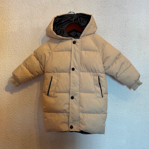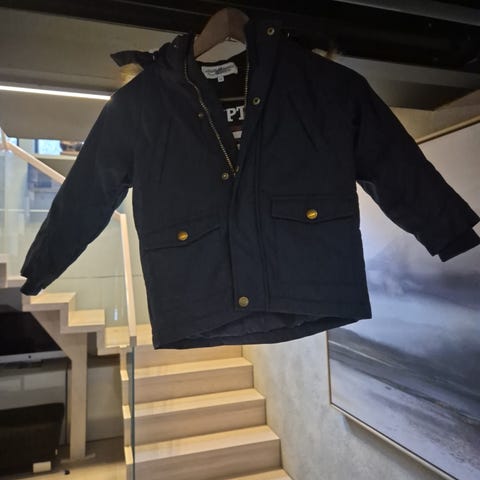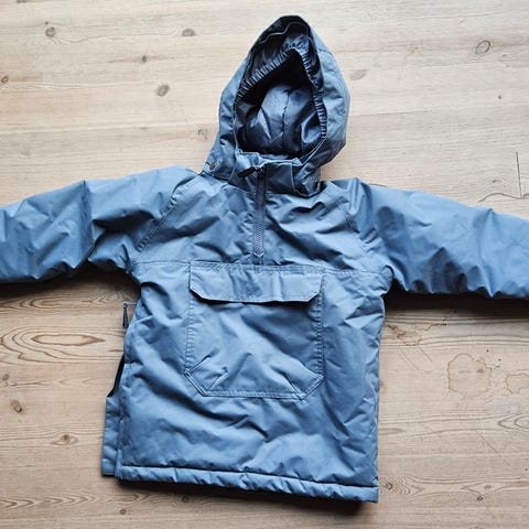 Kuling parkas jakke for barn i størrelse 104. Jakken er blå og passer som unisex. Den har hette med fuskepelskant, lange ermer og lengre passform bak. Foran er det lommer med klaff og knappelukking. Jakken har glidelås foran med klaff over for ekstra beskyttelse.