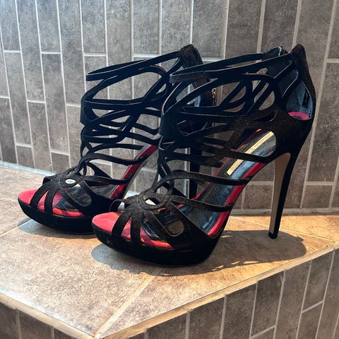 Ubrukte «høye hæler» til salgs. De er merket str 40, men passer en str 39.