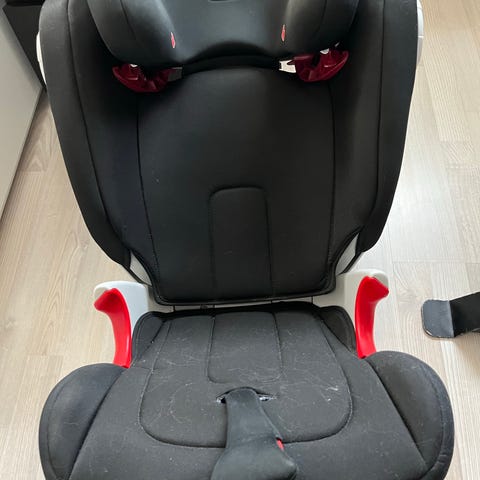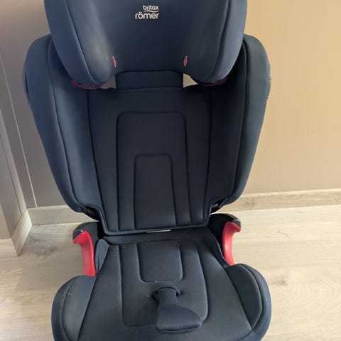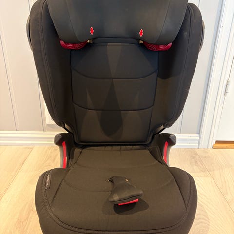 Britax Römer Kidfix II XP barnesete for barn i vektklasse 15–36 kg. Barnesetet har høy rygg med justerbar hodestøtte og belteføring. Setet brukes sammen med bilens trepunktsbelte. Modellen er godkjent etter ECE R44/04 og er egnet for framovervendt montering i bil. Farge: svart med røde detaljer.