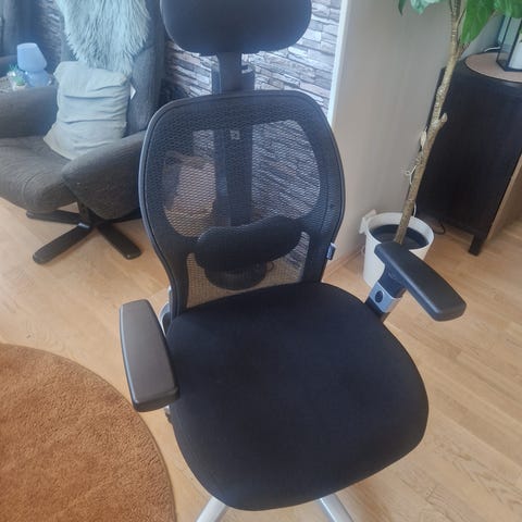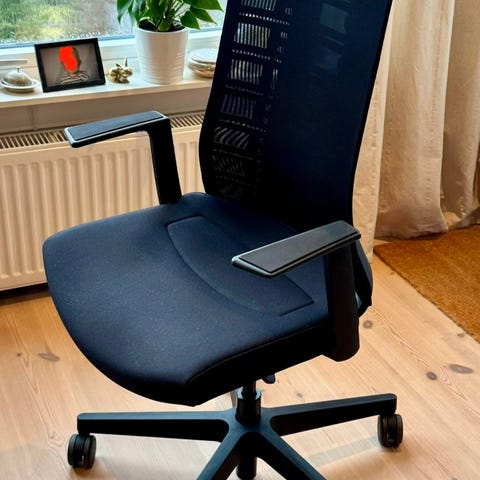 Selger en flott Savo XO HLN kontorstol i lyseblått Ruskin-stoff med eksklusiv rygg i tre. Dette er en kvalitetsstol fra norske Savo, kjent for ergonomi, komfort og svært solid byggekvalitet. Nypris på tilsvarende modeller ligger ofte på 15 000–19 000 kr avhengig av konfigurasjon. Denne er Topp-modellen.