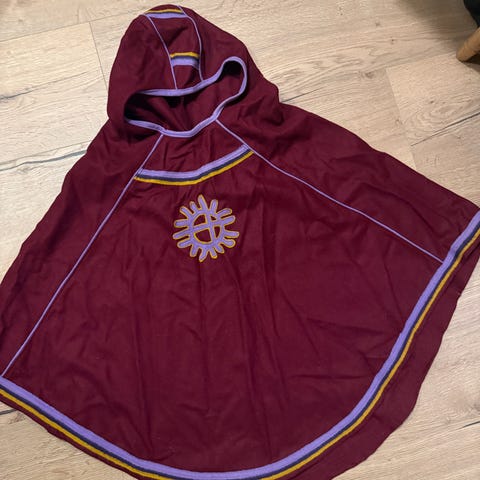 Poncho/luhkka. Nesten ikke brukt, ligget for det meste pakket ned. Ull i en klar blå farge.