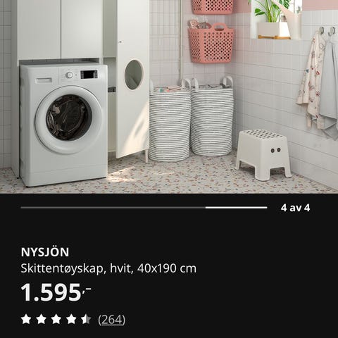 For mer informasjon, URL: https://www.ikea.com/no/no/p/nysjoen-skap-til-vaskemaskin-hvit-10496477/