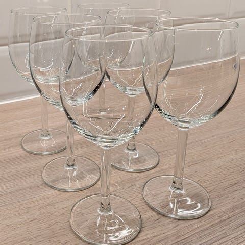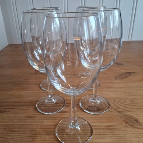 Klassiske vinglass. 5 store rødvin og 3 rosé-/hvitvinglass.