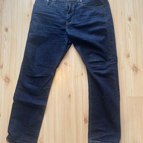 Levi's 502 jeans i svart denim. Buksen har størrelse W32 L30. Passformen er 502, som er en moderne, lett avsmalnende modell for menn.