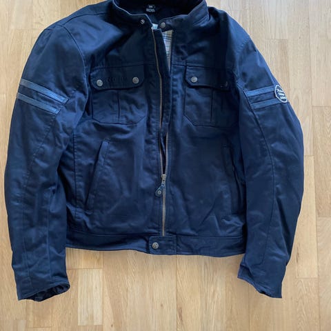 Pent brukt motorsykkeljakke med løst innerfor. Kan benyttes både i varmt og kaldt vær. Ryggskinne og solid beskyttelse i skuldre og albuer. Størrelsen er angitt L, men passer best til M- størrelse. Selges fordi den er for liten. Hentes i Fredrikstad eller sendes med posten.