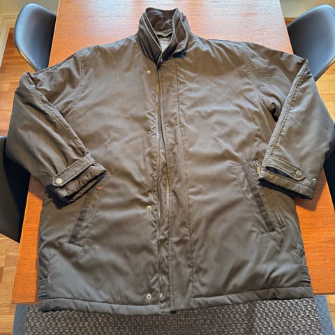 Fin jakke til mann til salgs. Str large. 100% polyester. Marineblå på farge. Jakken er ny og ubrukt.