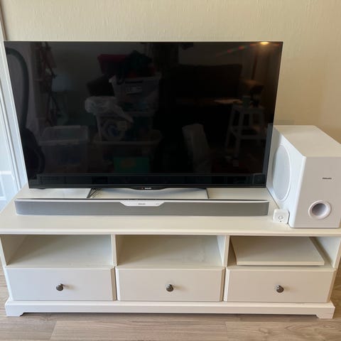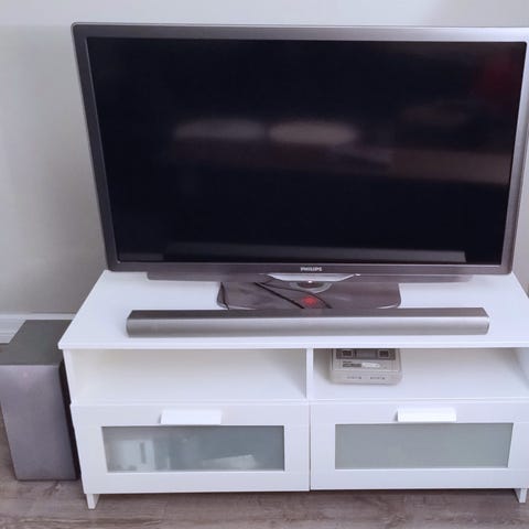 Godt brukt tv benk gis bort. Hentes i Brekko, 20min fra Ålgård. Må bort fort. Enkelte bruksmerker samt falmet i fargen. To skuffer til eks playstation eller lignende.