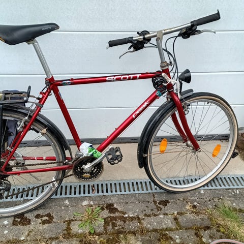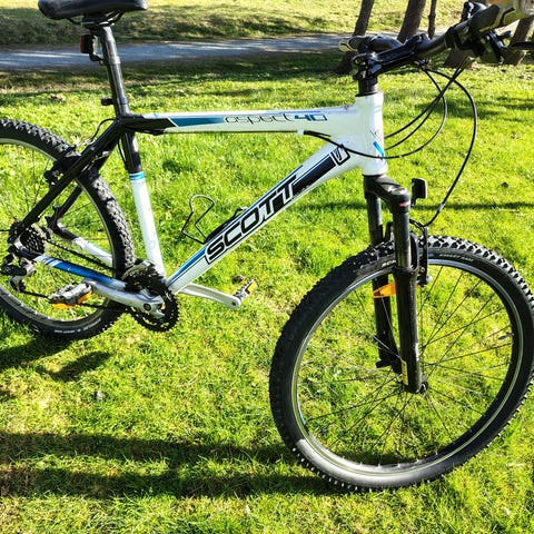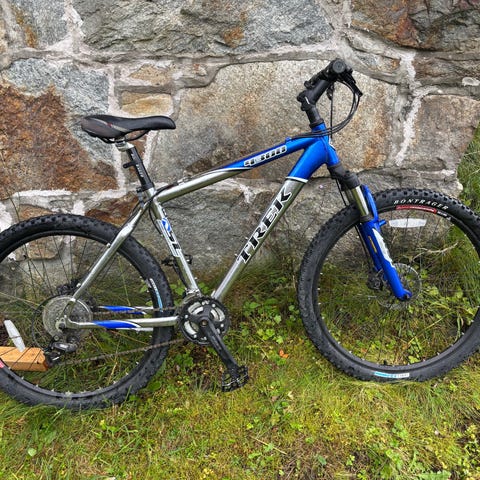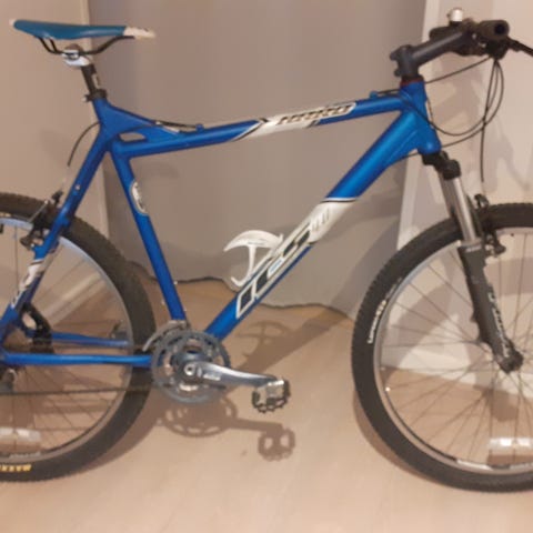 Sykkelen ble kjøpt brukt og er godt bruk. Utenom bruksmerker er sykkelen helt fin. Giren, både front og bak, funker bra, v-bremsene er i god tilstand og dempegaffelen funker fint. Sykkelen er i tillegg utstyrt med helt nye dekk! Sykkelen er markedsført som størrelse XL, men passer meg (M/L) helt fint. Hjulene er 26". Har du noen spørsmål er det bare til å sende en melding! Prisen er ikke satt i stein, så det er bare til å komme med bud!