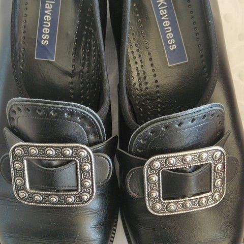 Ubrukte, svarte bunadssko.