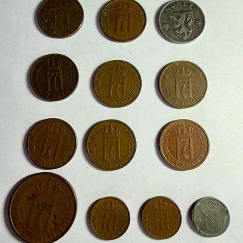 12 Norske Mynter 1909 - 1951