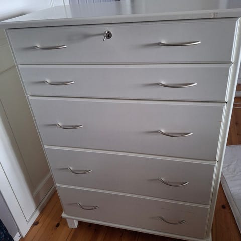 godt brukt gammel kommode. fungerer bra, ingen skader, men trenger litt maling.
