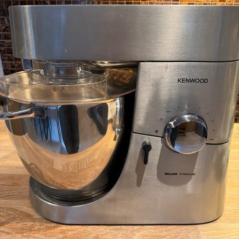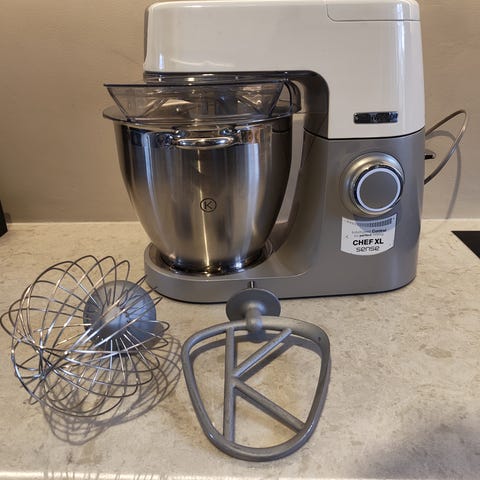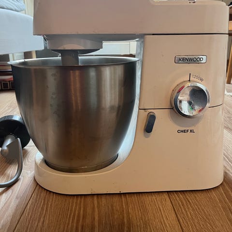 Kenwood kjøkkenmaskin med bolle, ulike visper og kjøttkvern. Godt brukt men fungerer fint enda.