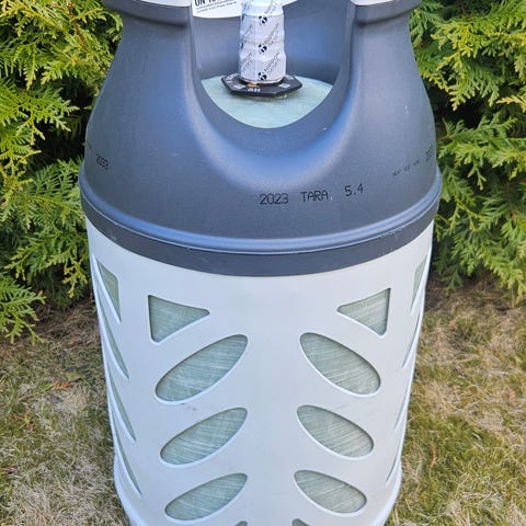Full kompositt gassflasker 5kg. Den er full og plombert.