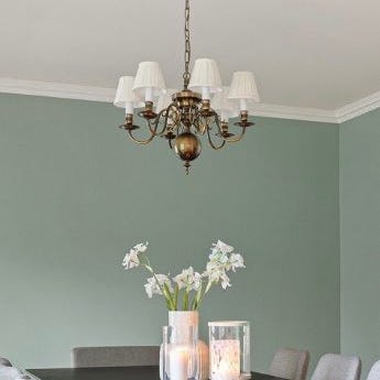 Den kjennetegnes av sin moderne tolkning av den klassiske lysekronen med myke kurver og matchende skjermer i sølv- eller kromfinish.