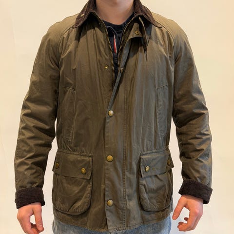 Selger en Barbour Ashby i klassisk olive, størrelse medium.