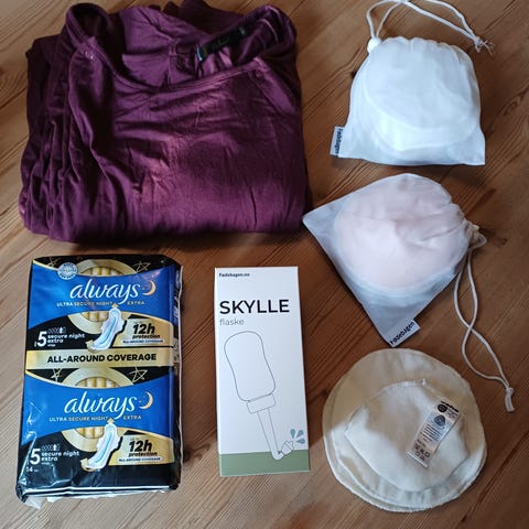 Selger en barselpakke med følgende varer: