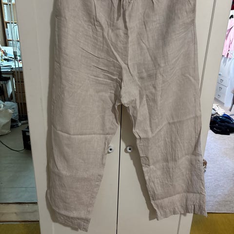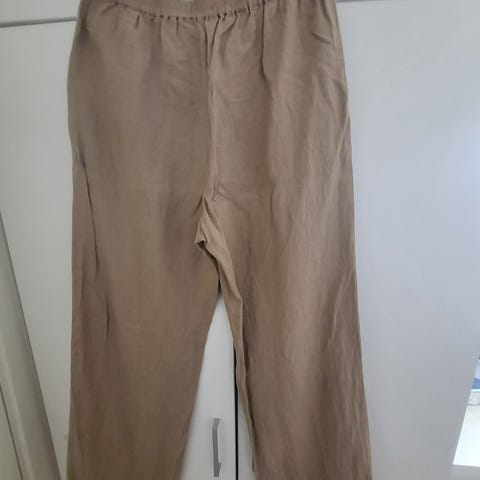 Massimo linbukse brun /olivengrønn i str L. Buksen er 3/4 lengde.