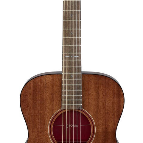Solid mahogany top; mahogany back and sides
