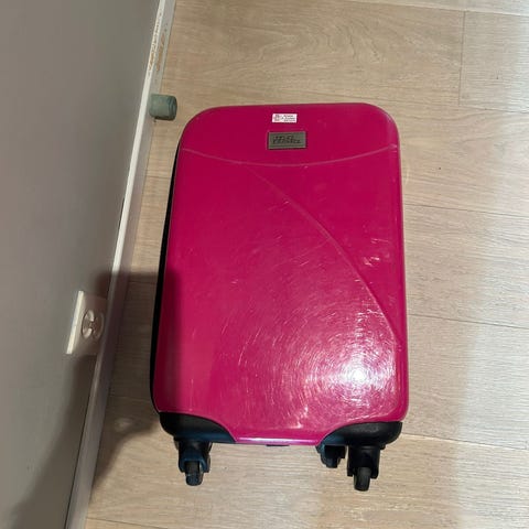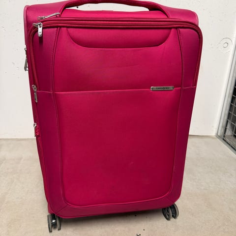 Medium størrelse. 69x49. To hjul. Noen bruksmerker litt større riper på utsiden på den ene. Som nye på innsiden.