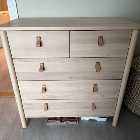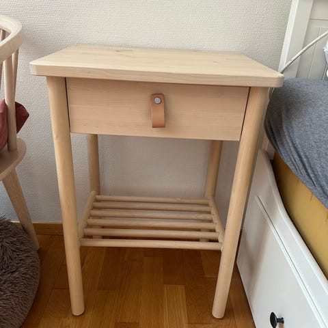 Selger to stk Björksnäs nattbord fra IKEA. Kun brukt til styling av leilighet for salg. Ny pris er kr 1 295,- per stk. Jeg selger begge samlet for 1400,- Eller kr 800,- per stk.