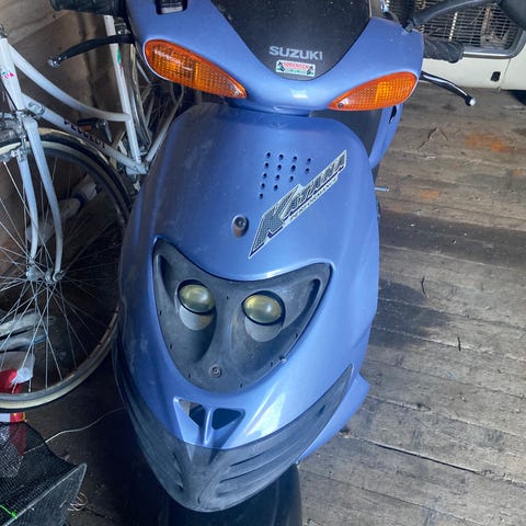 Den har blitt godt brukt og har en god del bruksmerker og knekte deksler. Mangler lykta framme