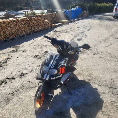 Det står 70 sylle, 21 gasser i den og orginal eksos. Det er ikke visning på den så er bare å registrere den igjen. Starter og går
