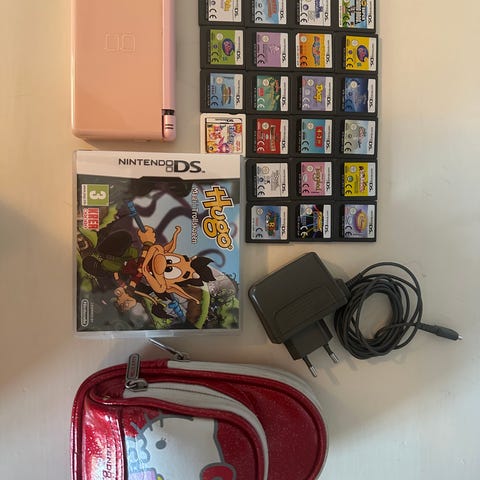 Nintendo DS konsoll med spill og lader