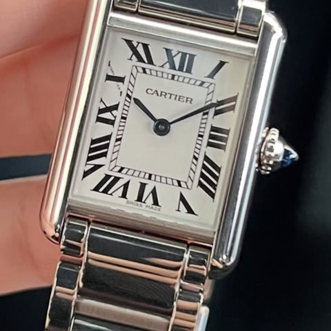 Cartier Must de Tank Vermeil Lapiz Lazuli fra 1981. Klokken består kun av orginaldeler og kommer med original boks. Klokken holder tiden godt og er i generelt god stand.