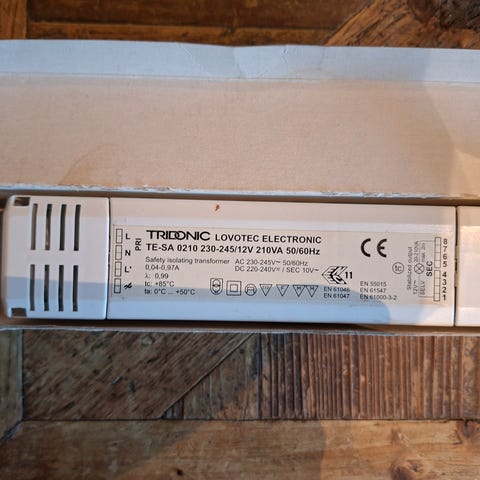 Elektronisk transformator for 12 V halogenbelysning.