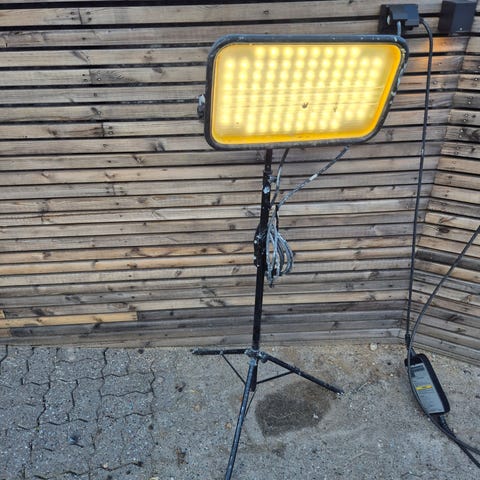 Dette er et robust og justerbart gulvstativ for arbeidslamper, perfekt til byggeplass, verksted eller andre steder hvor du trenger kraftig belysning i høyden. Stativet har tre ben for god stabilitet og kan enkelt heves og senkes.