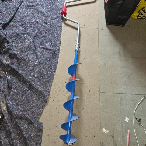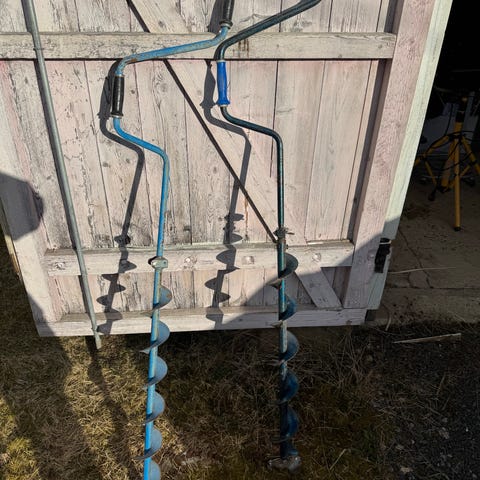 Manuell isbor i metall. De 2 grønne er 110 mm Rantanen UR og det blanke er 120 mm.